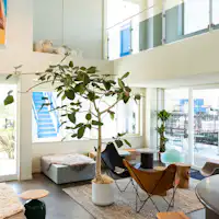 ― 目前に海を見据える全17室のライフスタイルな海ホテル ― クールでアーティーな佇まい、海に沈む夕陽とアート、サウナを楽しむ。 シンプルでミニマムながらも、気鋭のクリエイターとのコラボレーションによるアートが施されたゲストルーム。 ドアの向こうに、心静かに心躍るステイが始まります。 インパクトのあるサウナヒーターとセルフロウリュ、チラー付きの水風呂が設置された最高のととのい環境も。 1Fエントランスラウンジはコワーキングスペースやバー感覚でのコミュニティスペースとしてもお楽しみいただけます。