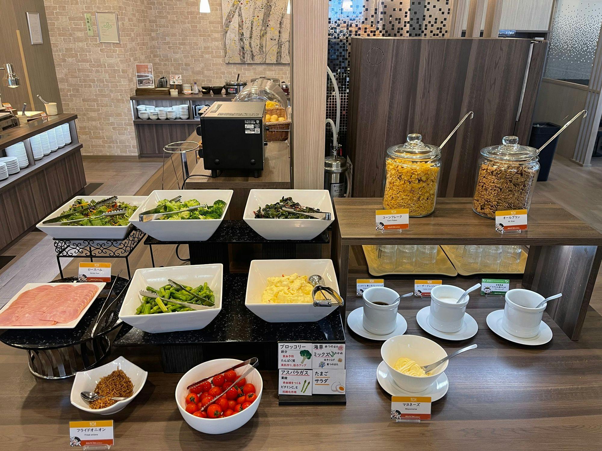 | 朝食 | ■和洋バイキング朝食(ご宿泊者無料) ■朝食会場⇒ホテル1階 Restaurant NAGOMI ■ご利用時間⇒6:30~9:00 |
