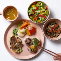 | 朝食 | 「わたし好みでつくる、一汁三菜プレート」 その日の気分に合わせて、好きなものを少しずつ。 ブッフェスタイルで選んでつくる、あなただけの一汁三菜プレートです。 主食は、おにぎりやパンから。 汁物は、一番出汁の味噌汁や、ミネストローネ。 主菜は、卵料理やチキン、旬の野菜を使用した焼き野菜。 副菜や副々菜には、野菜マリネやデリ、サラダ、フルーツなどをご用意しています。 朝食会場:14F THE BASEMENT LOUNGE 営業時間:7:00~10:00 |