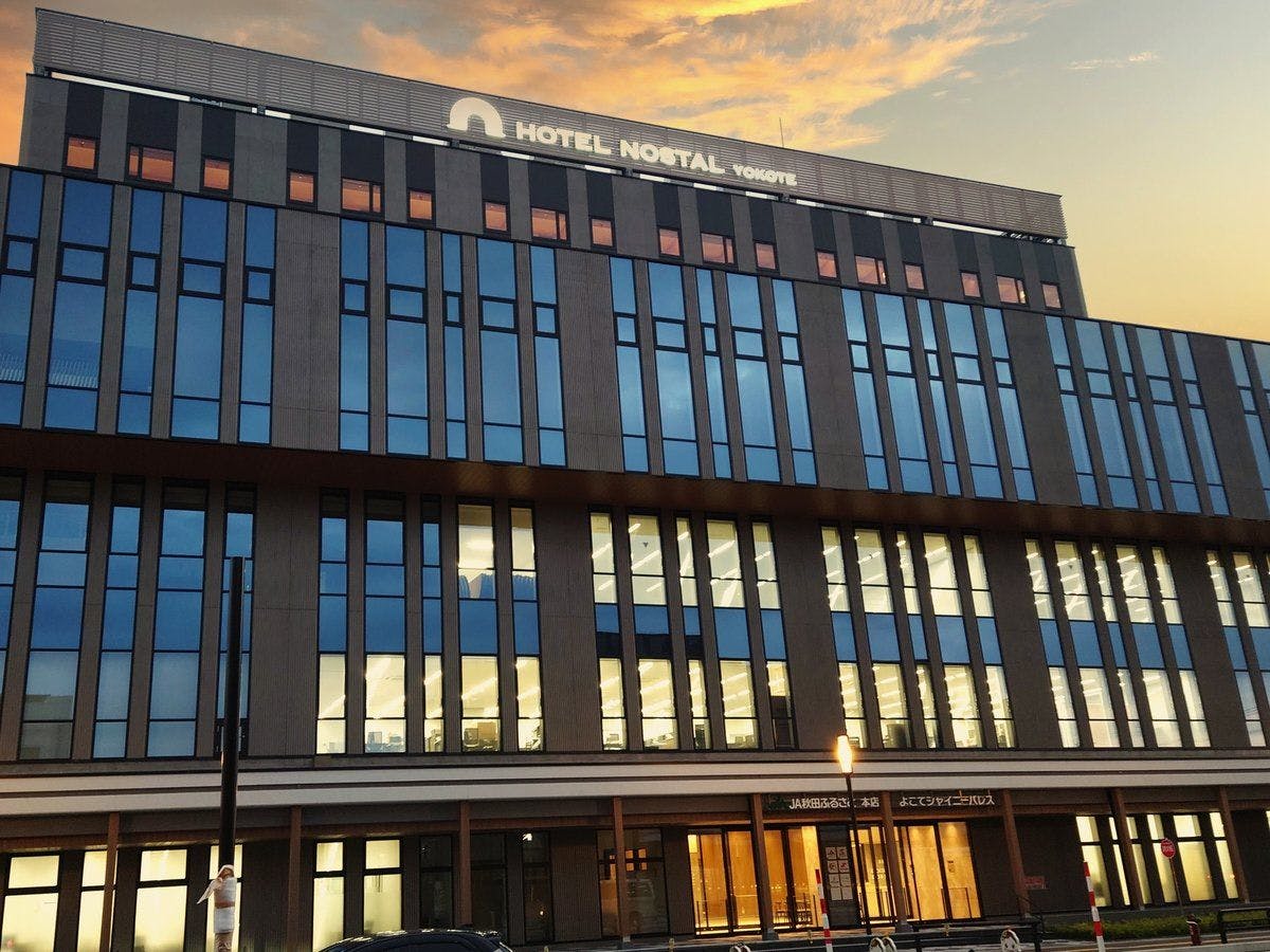 HOTEL NOSTAL YOKOTEは横手駅から徒歩2分、再開発地の中心に位置する北欧風のデザイナーズホテルです。全室バス、洗面、トイレが独立した機能性とデザインに優れた客室。 ロビーは秋田杉を使用したモダンで開放的な仕様になっております。居心地の良い快適な空間でごゆっくりとお寛ぎ下さい。