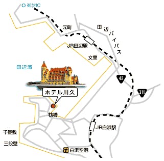 ■By Train - From Shin-Osaka or Tennoji, take the "Super Kuroshio" to Shirahama Station (2 hours), then a 10-minute taxi ride from Shirahama Station. - From Tokyo or Haneda Airport, take a flight to Shirahama Airport (1 hour), then a 15-minute taxi ride from Shirahama Airport. ■By Car - 2 hours and 30 minutes from Osaka by car. - From Osaka city, take the Hanshin Expressway or Kinki Expressway to the Hanwa Expressway. From the Nanki Tanabe I.C, follow the Tanabe Bypass to Shirahama, then follow the signs for Shirahama Pier and Rinkai. Turn right at the next signal after Shirahama Pier. Approximately 14 km from Nanki Tanabe IC.