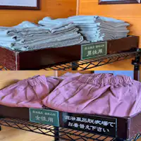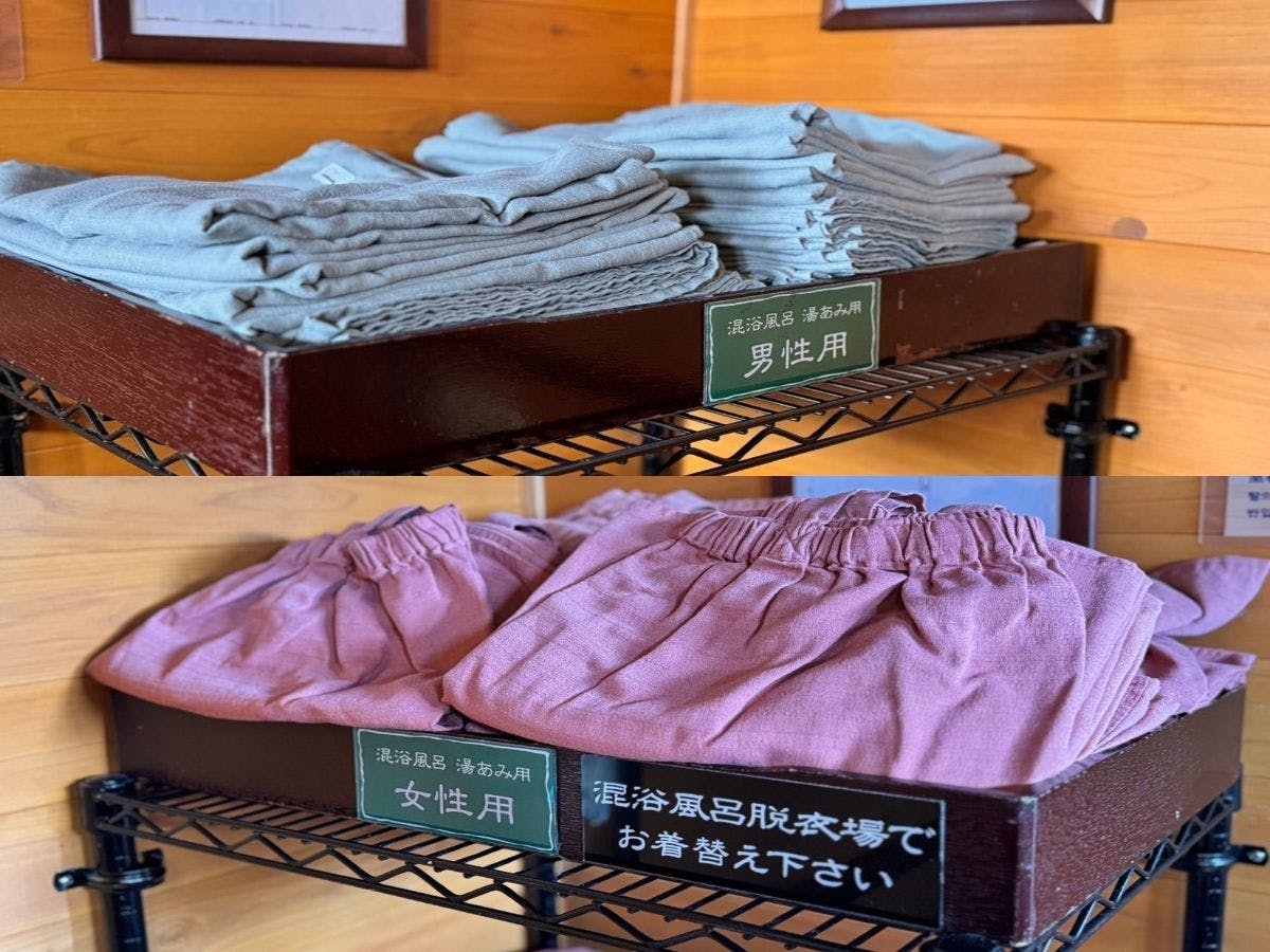 Before entering the mixed-gender open-air bath, please change into the provided bathing attire available in the separate changing rooms for men and women.