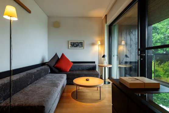 A comfortable private space with timeless interiors, furnishings crafted by artisans and artists from Ehime, and a spacious bathroom overlooking a seasonal water garden. The Room is equipped with items and drinks to ensure you fully enjoy your stay. Relax and rejuvenate as you forget the passage of time.