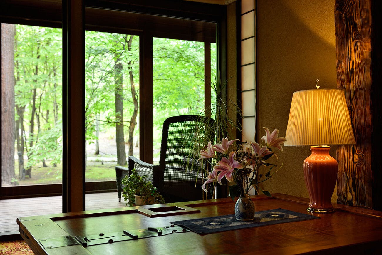 Centered around a wooden-floored living room, "Main Building Mori no Kaze" harmonizes modern and classic styles. "Annex Mori no Tsuki" focuses on tatami rooms, cherishing the warmth of simple wood and Japanese aesthetics. All eight guest rooms of Lapin feature semi-open-air baths of Baragi Onsen and private dining areas.