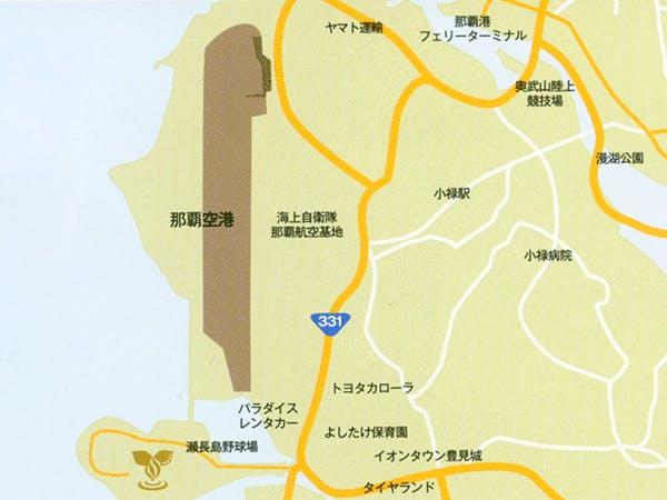 Approximately 15 minutes by car from Naha Airport via Route 58, Oroku Bypass towards Tomigusuku/Itoman, and about 2 minutes from Senaga Intersection.