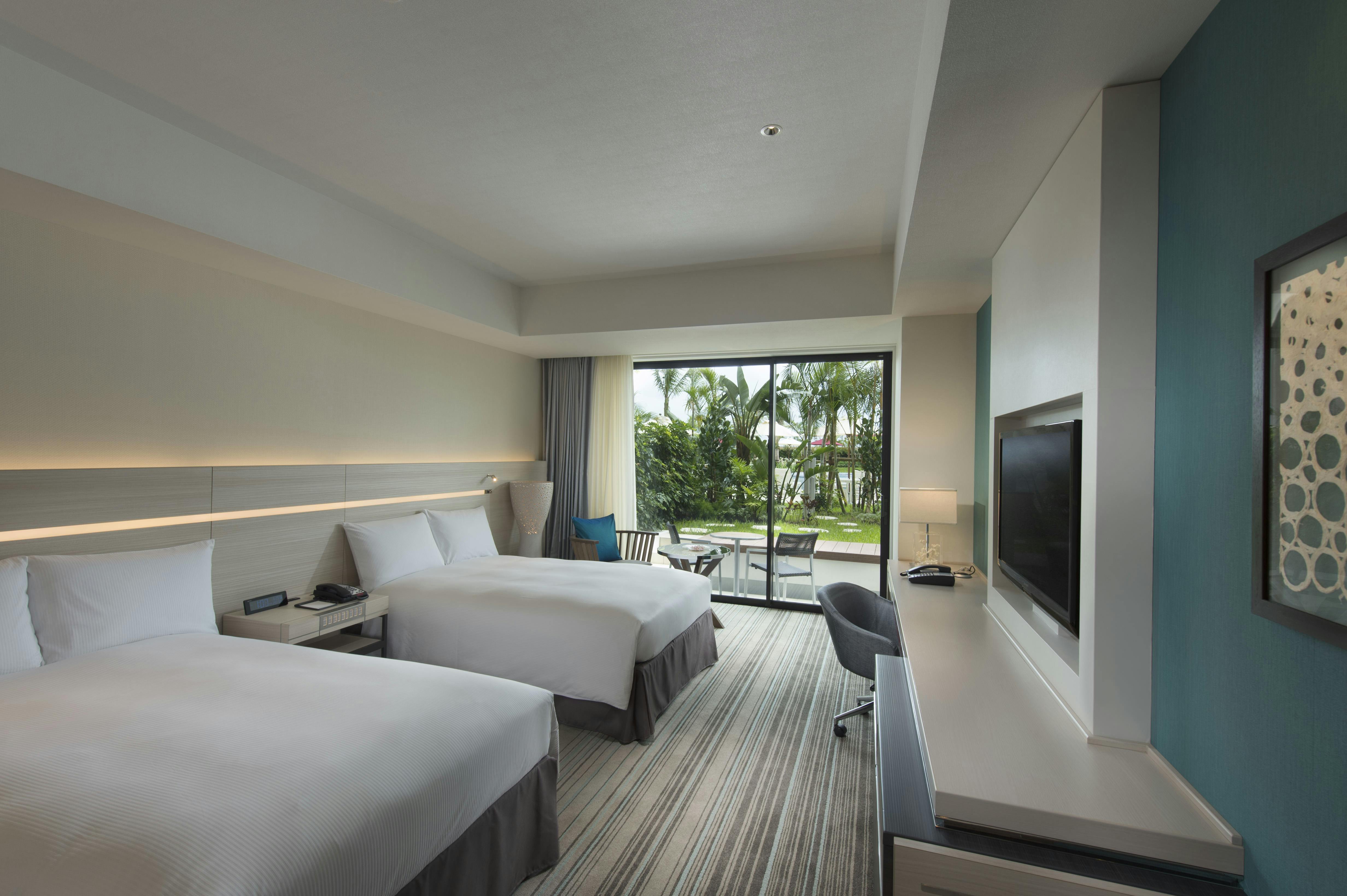 Functional and spacious guest rooms offer stunning views of the crystal-clear Chatan sea and charming townscape.