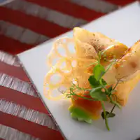 The sukiyaki is prepared right before your eyes by our skilled chef at your table. As the heated iron pot sizzles with slices of beef and aromatic warishita sauce poured over it, the glossy fat begins to melt gently. For your first bite, savor the perfect balance between the lean red meat and fine marbling of Tsuyama Wagyu. Pair it with fresh Sakushu free-range eggs or grated daikon radish for a unique dipping experience. Following that, enjoy seasonal Sakushu vegetables and Awaji onions simmered together with the rich sweetness of premium beef for an exquisite harmony of flavors. To finish off this delightful meal, relish thick udon noodles specially crafted for this sukiyaki course.