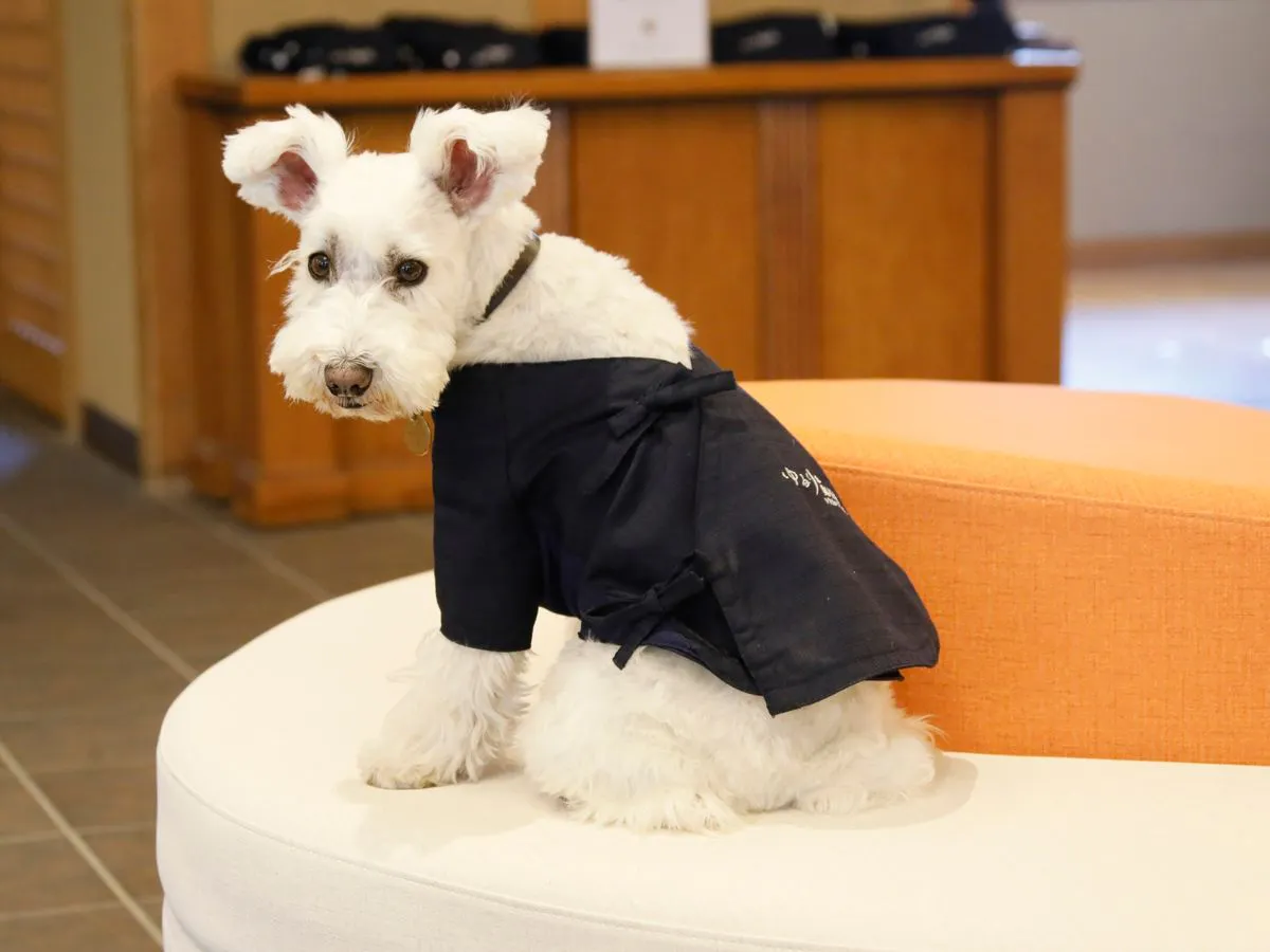 You are welcome to use the restaurant and the outdoor dog run while your dog is wearing the samue. After check-in, we invite the whole family to change into yukata and samue and enjoy your Onsen stay with us!