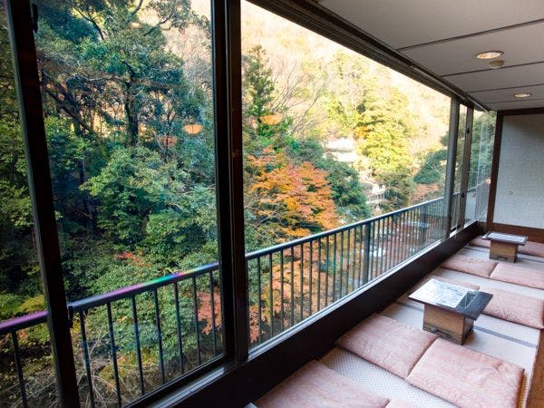 Enjoy the beauty of nature through the seasons and the renowned hot spring "Kitachi no Yu" at our inn, nestled along the streams of the Amagi mountain range. Indulge in various baths, including a cave bath overlooking the pristine Nekogoe River and an open-air bath with natural hot spring water flowing directly from its source.
