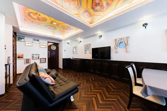 The first floor is designed like a luxury cruise ship, and the second floor like a spaceship! A Room full of playful ideas carefully crafted by the owner to bring joy to children! Both adults and children are sure to feel excited! The treasure hunt to find treasures hidden behind 8 secret doors is also very popular. The first floor offers a calm atmosphere with a clean and spacious space resembling an art museum. It features round windows, large wooden doors like those on a luxury cruise ship, and a Renaissance painting on the ceiling. There are two sofa beds for two people each. As you climb the stairs to the second floor, you enter the world of a spaceship. The bedrooms include a spaceship (for 3 people) and a control room (for 3 people). The dynamic spaceship design allows you to enter through futuristic doors like those seen in sci-fi movies. From the spaceship cockpit, you can view the vast universe. Pressing the self-destruct button won’t cause an actual explosion, but you’ll hear a small explosion sound. Feel like you're on a space journey by handling the cockpit controls and pressing buttons! (Please note, this is not a game). The stylish control room features illustrations that make it feel like you're gazing into space through large windows, offering an extraordinary experience. The ceiling and round windows are also designed to entertain. Sleep in astronaut-themed beds and feel like an astronaut yourself! Take fun photos and create unforgettable memories. Other features include a luxurious bathroom with three types of showers and a spacious bathtub, a large living room, a big kitchen with plenty of amenities, two toilets, free parking for two cars, and a convenient location near the station, supermarket, and convenience stores—definitely attractive points!