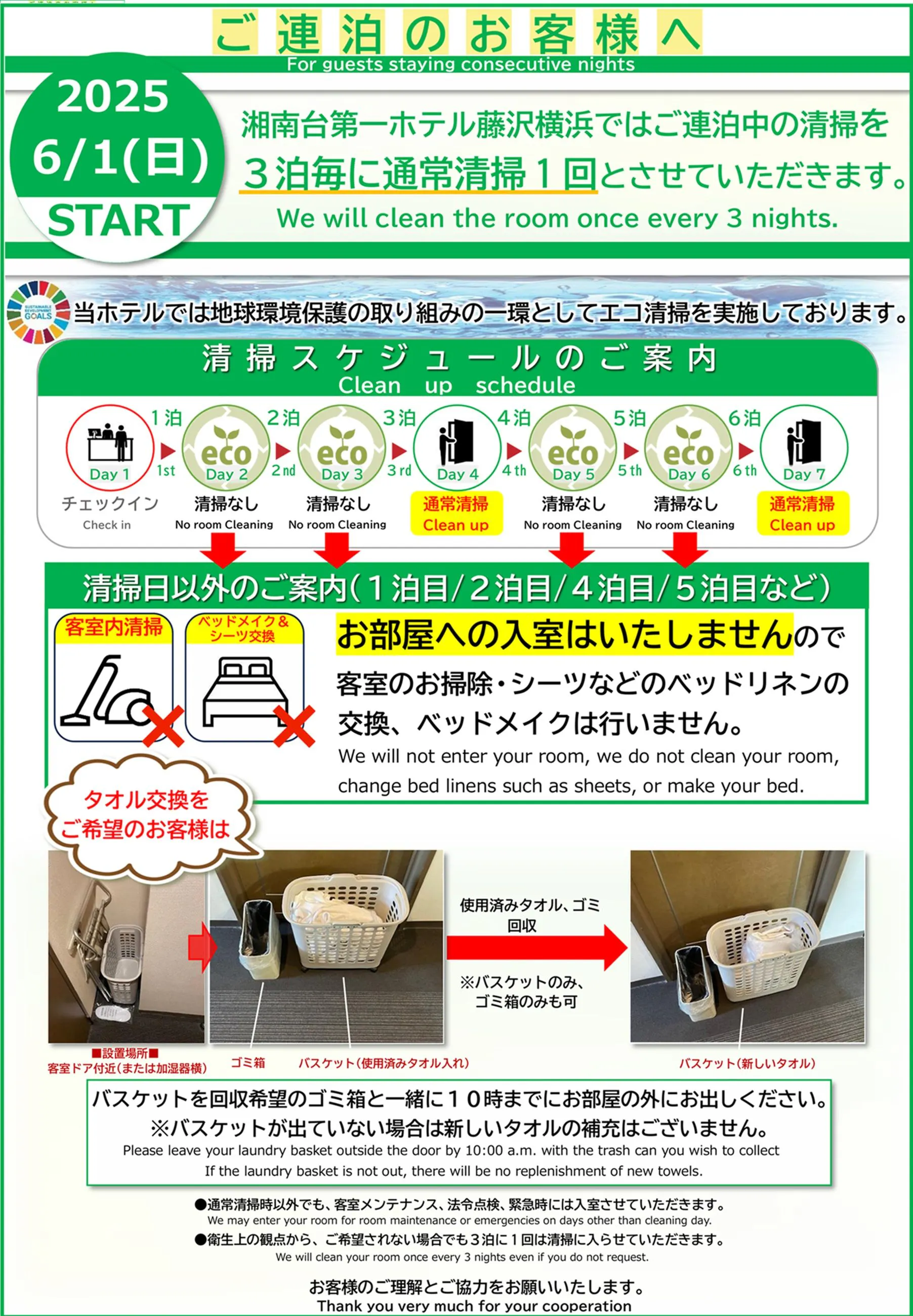 As part of our SDGs initiatives, we will introduce “Eco Cleaning” starting June 1, 2025.