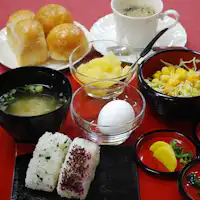Business Hotel located just a 1-minute walk from JR Higashi-Hagi Station. Features a large bath with separate outdoor baths, saunas, and cold baths for men and women (indoor baths only available in the morning). Complimentary breakfast includes rice balls made with Hagi-grown Koshihikari rice and freshly baked bread, offering a local menu to start your day energetically. Free drink corners on each floor provide water, coffee, and tea 24/7! The hotel building houses various tenants, including dining options, car rentals, and souvenir shops.