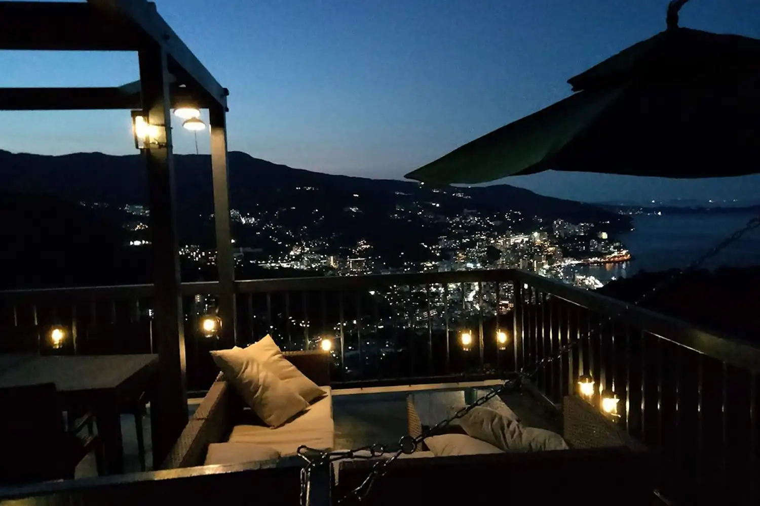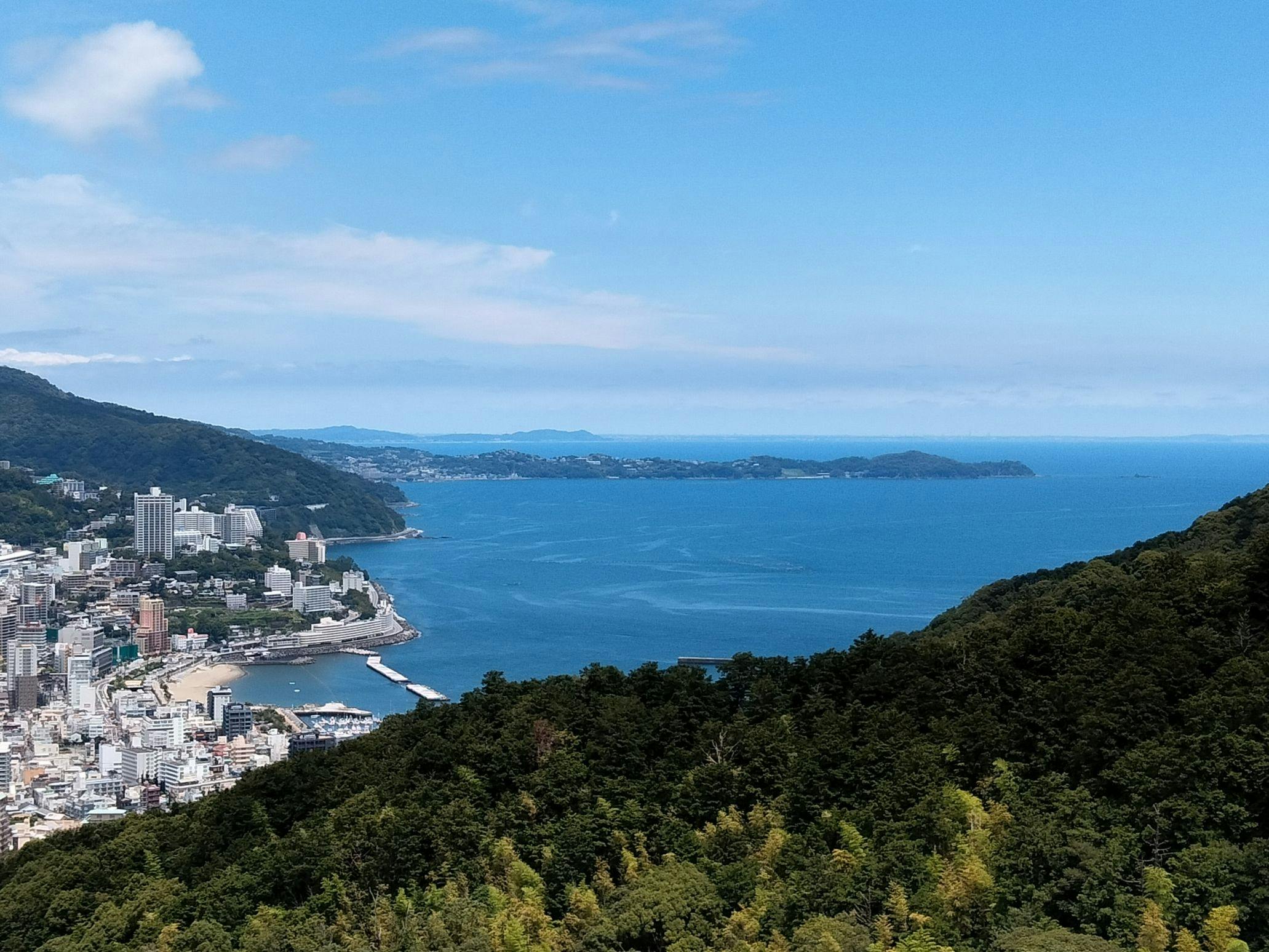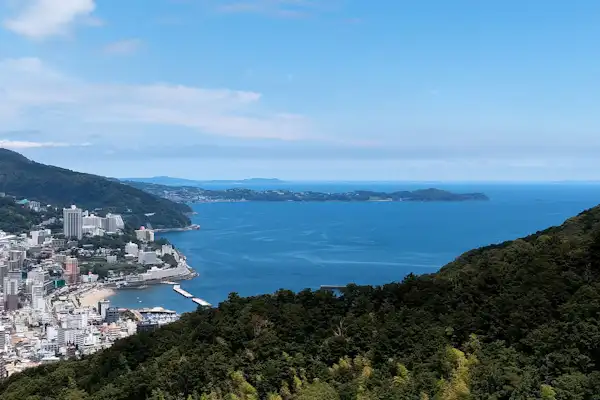 Enjoy a panoramic view of Atami City from the hilltop and relax in a Hinoki bath with natural Onsen.