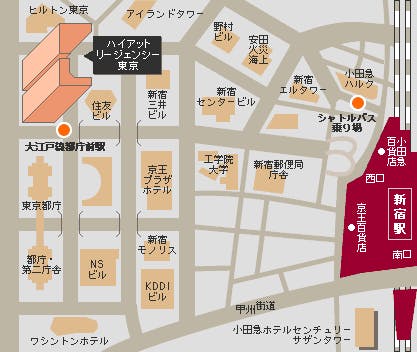 ■Jika Datang dengan Kereta■ ≪Toei Oedo Line / Stasiun Tochomae≫ 1 menit berjalan kaki dari pintu keluar A7 ≪JR & Jalur Swasta / Stasiun Shinjuku≫ Sekitar 9 menit berjalan kaki dari pintu keluar barat ※Kami menyediakan bus shuttle gratis yang menghubungkan Stasiun Shinjuku dan Hotel. Pemesanan tidak diperlukan, layanan berdasarkan urutan kedatangan. Silakan periksa jadwal operasional dan detail lainnya di situs resmi kami. https://www.hyattregencytokyo.com/portals/0/compendium/HRT_ShuttleBus.pdf ■Akses dari Bandara■ ≪Bandara Haneda≫ Bus Limusin (langsung ke hotel): sekitar 60–80 menit Menggunakan Tokyo Monorail: Stasiun Hamamatsucho → JR Yamanote Line → Stasiun Shinjuku (sekitar 50 menit) Taksi: sekitar 40–60 menit ≪Bandara Narita≫ Bus Limusin (langsung ke hotel): sekitar 120 menit Narita Express (JR): sekitar 80 menit ke Stasiun Shinjuku Taksi: sekitar 90–120 menit ※ Waktu tempuh adalah perkiraan dan dapat berubah tergantung pada kondisi lalu lintas. ■Jika Datang dengan Mobil■ Sekitar 5 menit dari "Shinjuku Ramp" Jalan Tol Metropolitan