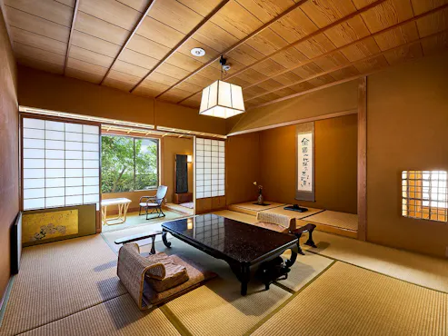 Akomodasi dengan keanggunan arsitektur sukiya yang mencerminkan keindahan Jepang klasik, menawarkan suasana tenang dan penuh pesona. Penginapan gaya Jepang ini dirancang oleh para pengrajin dengan dedikasi tinggi untuk menciptakan ruang yang tetap indah bahkan setelah 100 tahun, memberikan pengalaman menginap yang tak terlupakan dengan pelayanan hangat dari okami, staf kamar, dan petugas lainnya. Saat Anda berkunjung untuk merayakan momen istimewa, kami akan menyambut Anda di kamar yang dihias dengan gulungan lukisan atau barang antik bertema keberuntungan sesuai perayaan Anda.