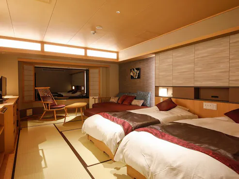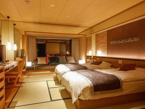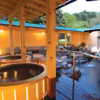 Dua sumber air panas pribadi yang memancar dari dalam area, “Shukou no Yu” dan “Nagomi no Yu”. Mulai dari pemandian terbuka berbatu yang dibangun dengan berbagai ukuran batu, hingga pemandian hinoki dan pemandian kama, beragam pemandian terbuka serta kualitas air panas yang halus dan bermutu mengundang Anda menuju relaksasi yang penuh kebahagiaan.