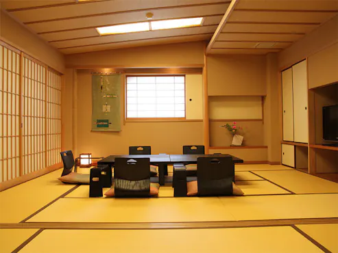 Ini adalah hidangan Kyoto Kaiseki dengan bahan musiman yang dipilih dengan cermat dan tampilan yang indah. Sarapan dan makan malam disediakan di ruang makan.
