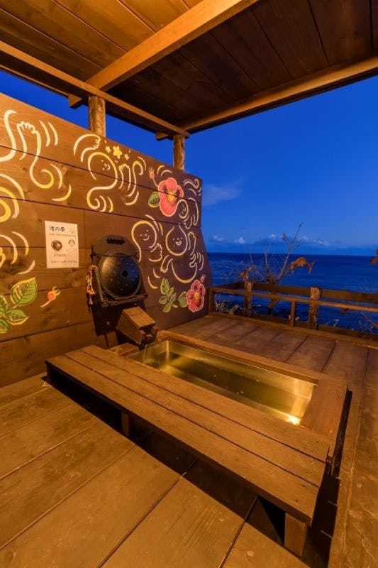 Pemandian terbuka dengan pemandangan Samudra Pasifik memiliki tempat tidur mandi khusus yang menghadap ke laut. Nikmati pemandangan indah di siang hari dan langit berbintang di malam hari di sini. Selain itu, terdapat juga sauna batu, thalassotherapy, dan perawatan batu panas.
