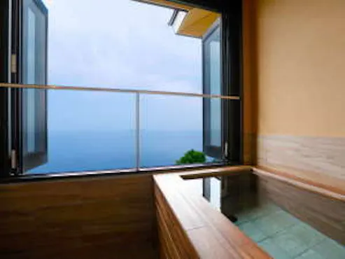 Di Tsuki no Akari, semua Kamar dilengkapi dengan bak mandi pribadi. (Beberapa tipe Kamar mungkin memiliki bak mandi tanpa pemandangan laut.) Nikmati bak mandi kebanggaan kami yang memungkinkan Anda merasakan angin laut Izu di kulit Anda.