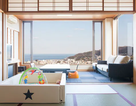 R2I 21/2/2026We stayed on this trip to celebrate our wedding anniversary, and it became a wonderful memory—thank you for preparing such a lovely dessert plate. The Accommodation is located on a hill overlooking downtown Ito, and we enjoyed spectacular views stretching to Hatsushima Island and Mt. Omuro in the distance. The Room was spacious with great views, and with the latest massage chair, a daybed, and a large terrace, we were able to relax at our leisure. The meal was also delicious: a creative kaiseki course blending Japanese and Western styles that made great use of local ingredients. We also appreciated that you prepared onigiri as a late-night snack in addition to the takikomi rice served at dinner.There happened to be a water outage in Ito City that day; it only affected the inability to use the shower in our Room, but you kindly accommodated us by offering private baths and showing thoughtful consideration throughout—we almost felt sorry for all the trouble.All of the staff were extremely courteous and pleasant, which made our entire stay comfortable.We often visit Izu but usually stay around Izu Kogen or East Izu, so Ito had previously been just somewhere we passed through—however, after this stay we’ve completely fallen in love with it. This is an Accommodation we would love to return to if we have another opportunity.