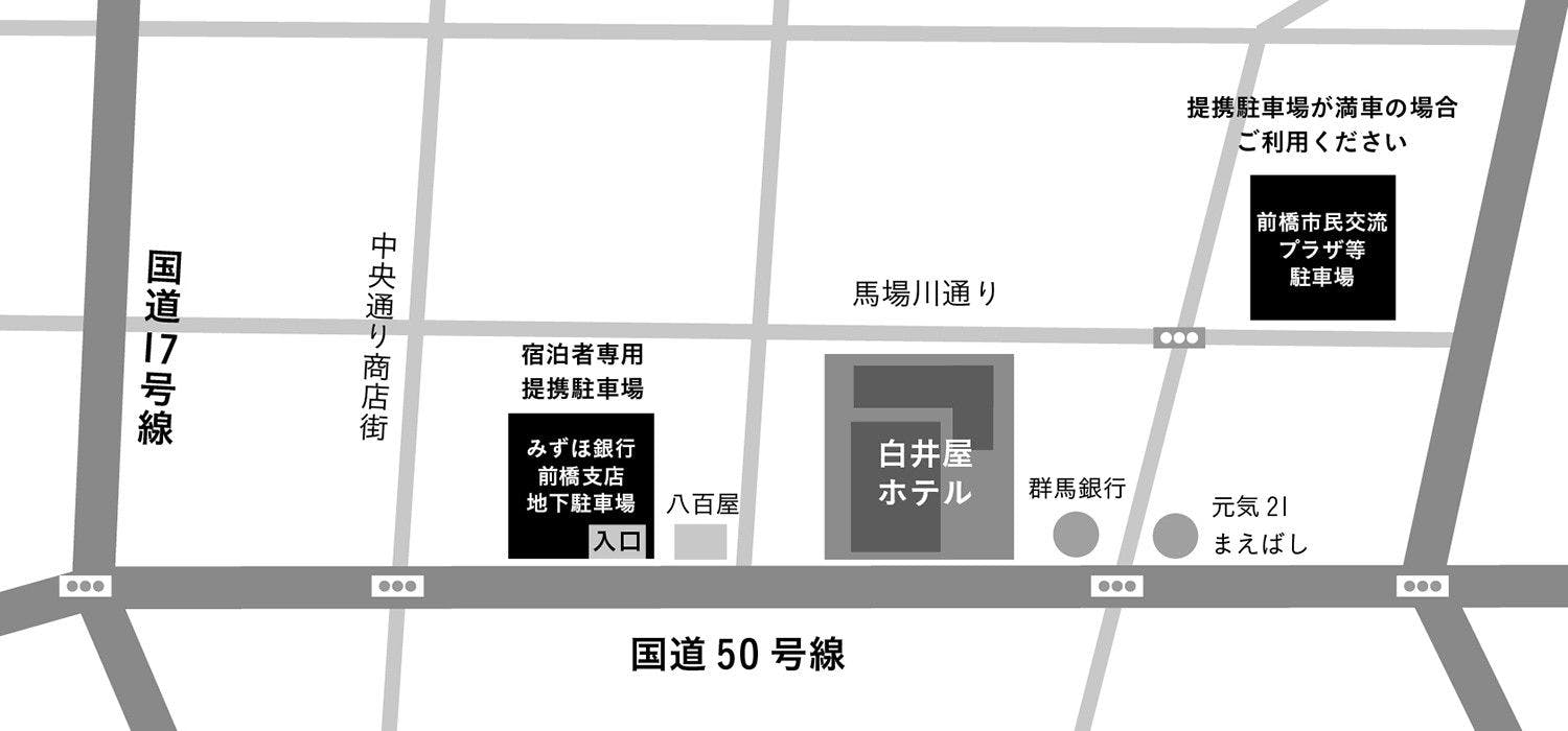 ※ Untuk tamu dengan malam berturut-turut, mohon menanggung biaya parkir dari pukul 12:00 hingga pukul 15:00 selama masa menginap atau menggunakan tempat parkir Maebashi Civic Plaza (Arts Maebashi Parking).