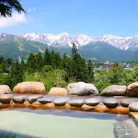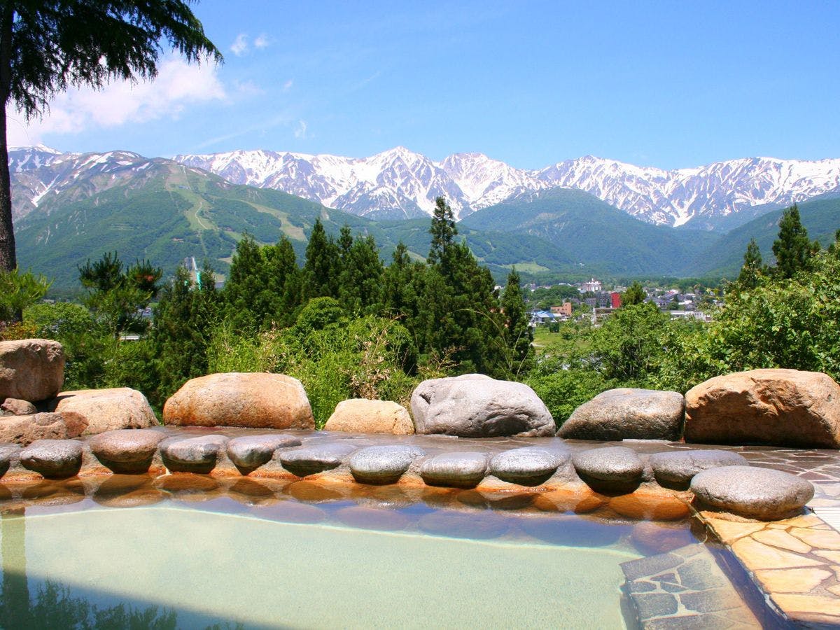 Hotel yang dikelilingi oleh pegunungan Alpen Utara. Nikmati pemandangan megah dari pemandian terbuka.