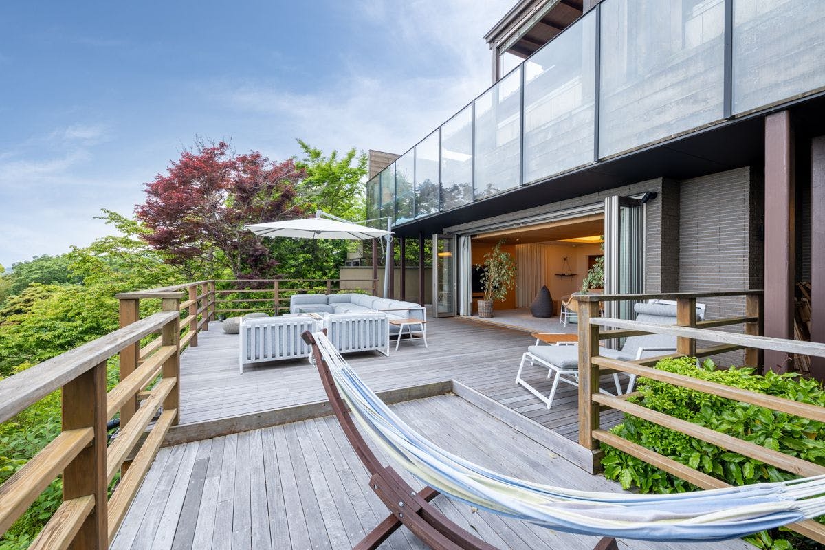 Resor istimewa di Bukit Sakura Atami yang menghadap Pelabuhan Atami di sebelah kiri dan Teluk Sagami di sebelah kanan, hanya untuk satu grup tamu per hari.