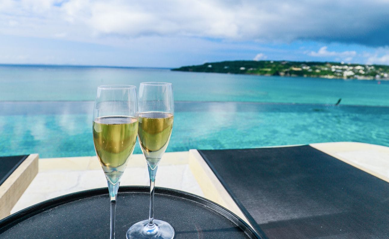 Laut biru, langit yang memukau, dan vila pribadi mewah yang dikelilingi hijau segar