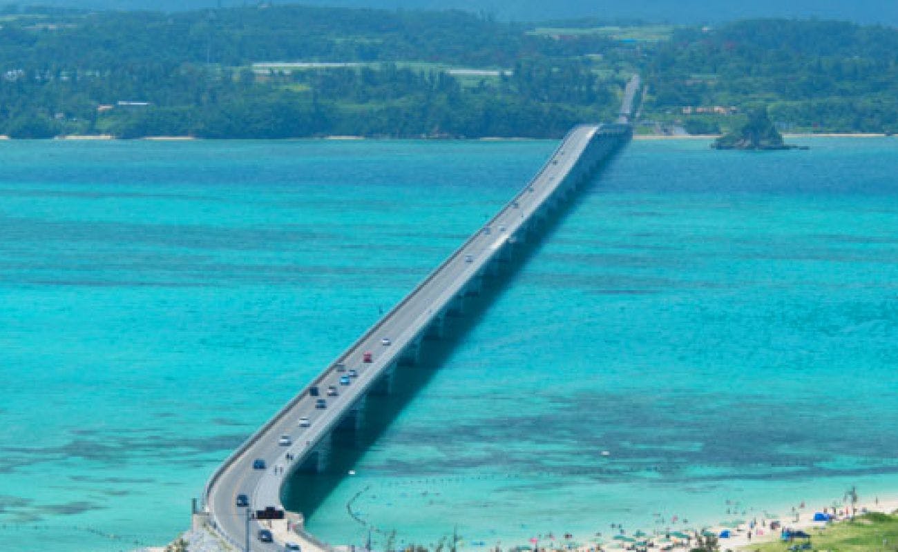 Dari Bandara Naha, gunakan Jalan Tol Okinawa dan keluar di pintu terakhir, Kyoda IC, lalu lanjutkan melalui Rute Nasional 58 menuju pusat Kota Nago.