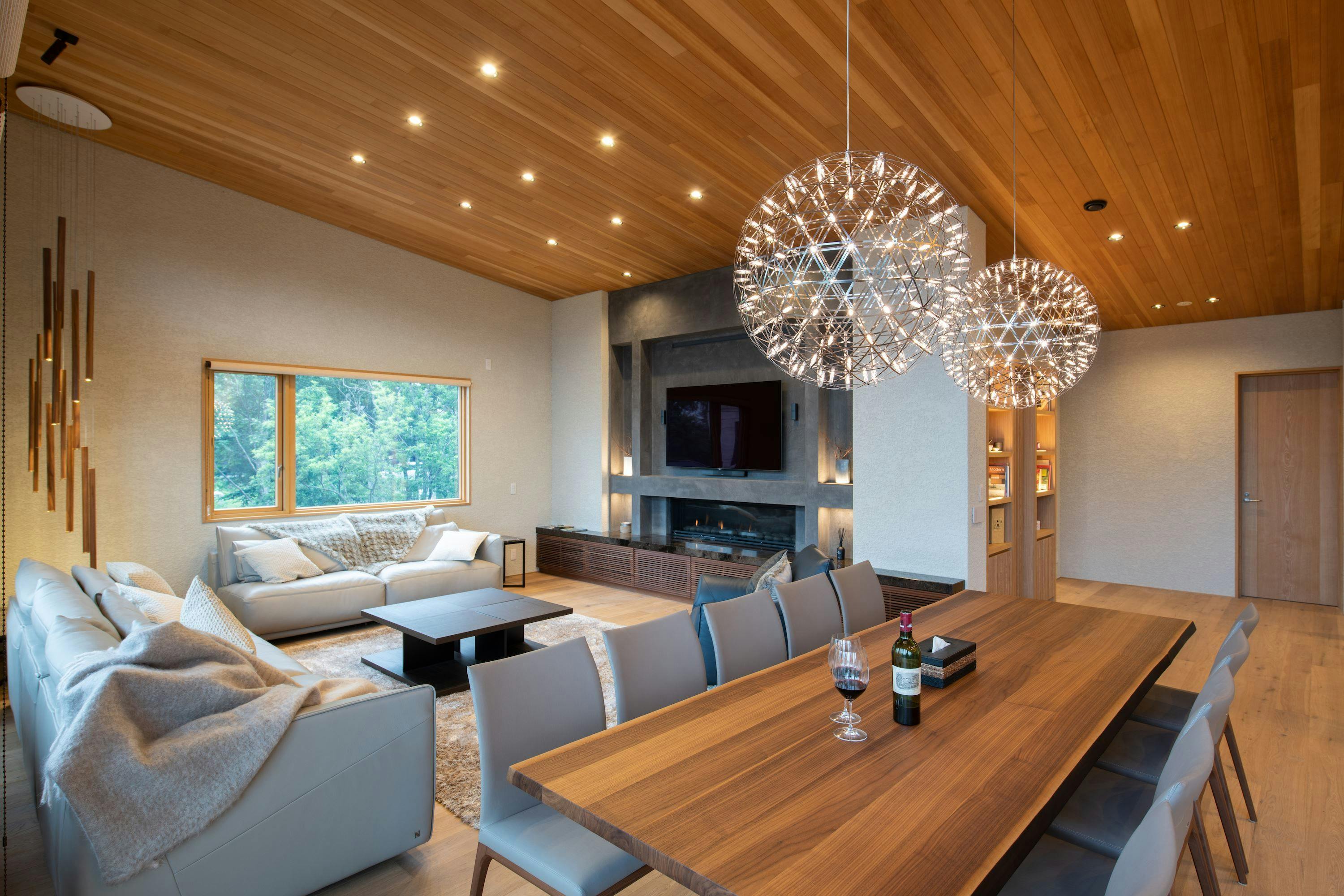 Villa mewah ini dengan 6 kamar tidur dan berbagai ruang sangat cocok untuk kelompok besar atau keluarga besar. Dibangun pada tahun 2018, villa ini menggabungkan keindahan arsitektur Jepang dan furnitur modern Italia. Dari ruang tamu dan ruang makan, Anda dapat menikmati pemandangan Gunung Yotei yang megah.