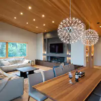 Ruang tamu dilengkapi dengan perapian gas, tempat Anda dapat bersantai di sofa kulit Italia. Enam kamar tidur masing-masing memiliki kamar mandi, sangat nyaman untuk perjalanan kelompok. Ruang media dilengkapi dengan sistem home theater BOSE, bersama dengan dapur lengkap, ruang cuci, dan ruang pengering, menjadikan vila ini mewah.