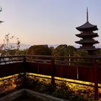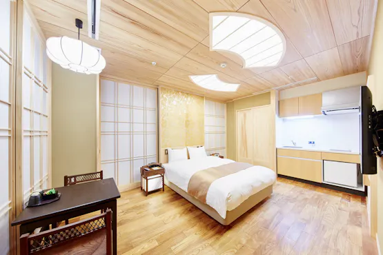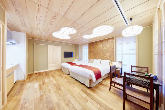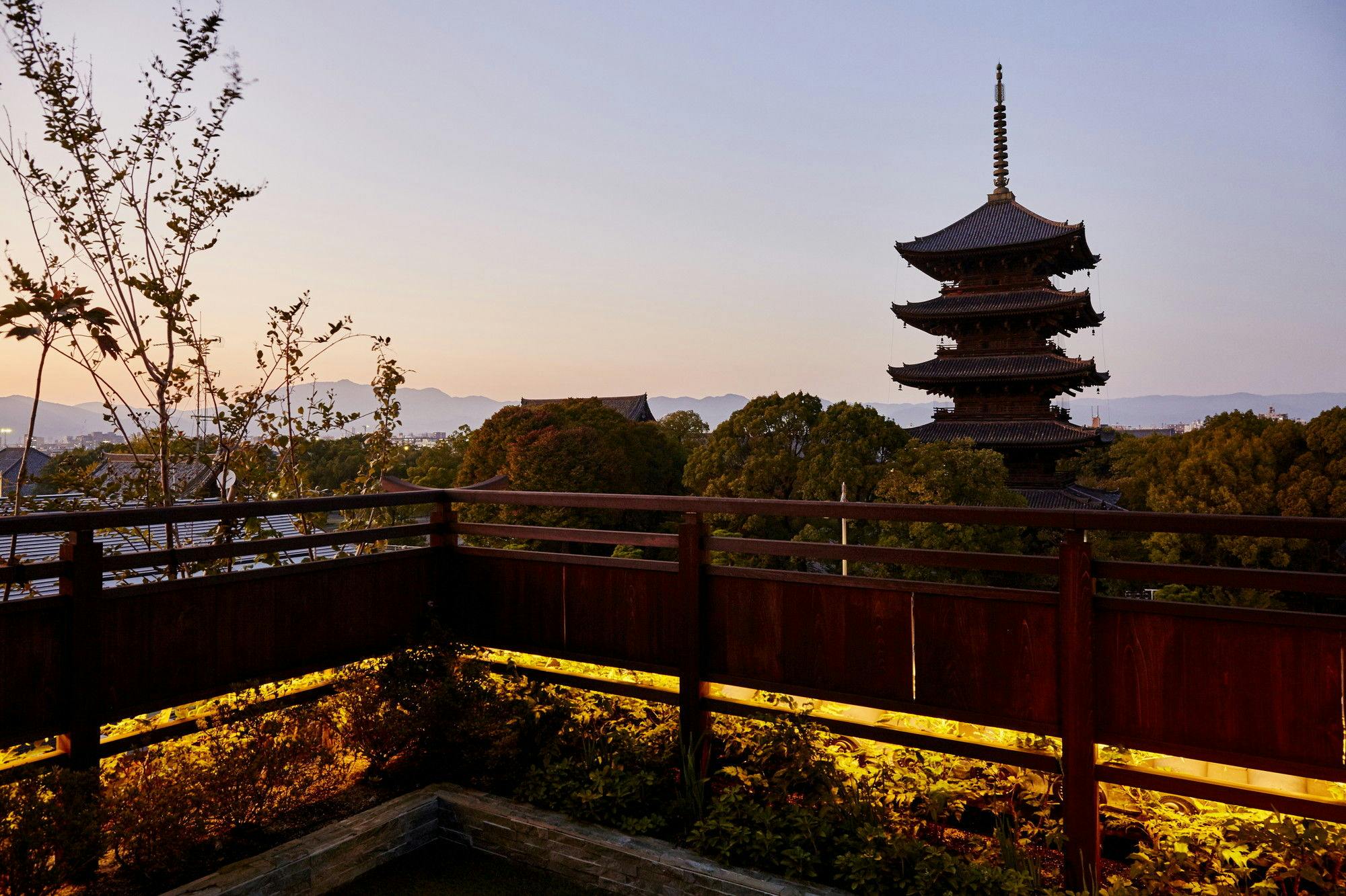 Pagoda lima tingkat To-ji tepat di depan mata. Hotel konsep yang ideal untuk masa inap jangka panjang.