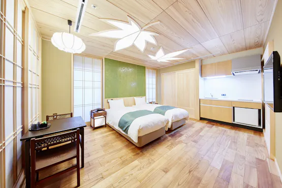 | Sarapan | Dalam Rencana termasuk sarapan, silakan nikmati sarapan set Jepang di Kamar Anda. Untuk Kamar Double/Twin, Biaya Akomodasi sudah termasuk untuk hingga 2 orang; untuk Kamar Family, hingga 3 orang. |