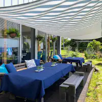 かおかおちゃん 1/1/2026The cottage features a calm and serene atmosphere with a white-based design, offering a clean and beautiful space. The weather was perfect, making the view of the sea from the hammock incredibly relaxing. Watching dogs play in the garden added to the blissful experience. Breakfast in the garden was delicious, and everything about our stay was absolutely amazing. We would definitely love to come back!