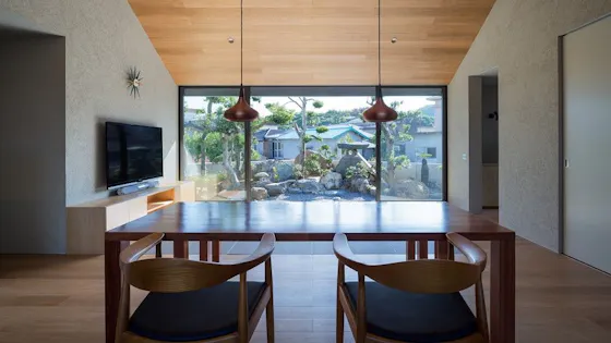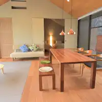 Akomodasi yang menggabungkan ruang kayu dan fasilitas modern, didasarkan pada arsitektur tradisional Amami dengan keindahan yang diprioritaskan.