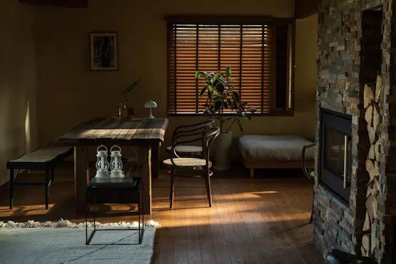 Yang kami tuju bukanlah kebaruan, melainkan nostalgia. Bukan kemewahan, melainkan kehangatan dan ketenangan. Interior yang menonjolkan perapian berbentuk tungku kayu ini menggunakan kayu dari Hokkaido serta bahan alami dan kayu bekas secara melimpah. Nikmati api unggun di dek kayu, barbeque dengan penggunaan kayu bakar yang mewah, membelah kayu di ruang tanah luas, tur sepeda motor melalui hutan yang dipenuhi pepohonan, atau pemandangan Sakuragaoka dari teras. Semua pengalaman ini dirancang untuk memberikan Anda masa inap yang tenang jauh dari rutinitas sehari-hari.