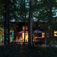 Nikmati momen mewah di private lodge yang dapat disewa eksklusif beserta seluruh hutan seluas 3 hektare.