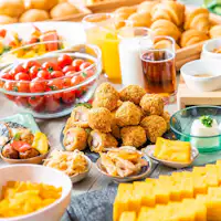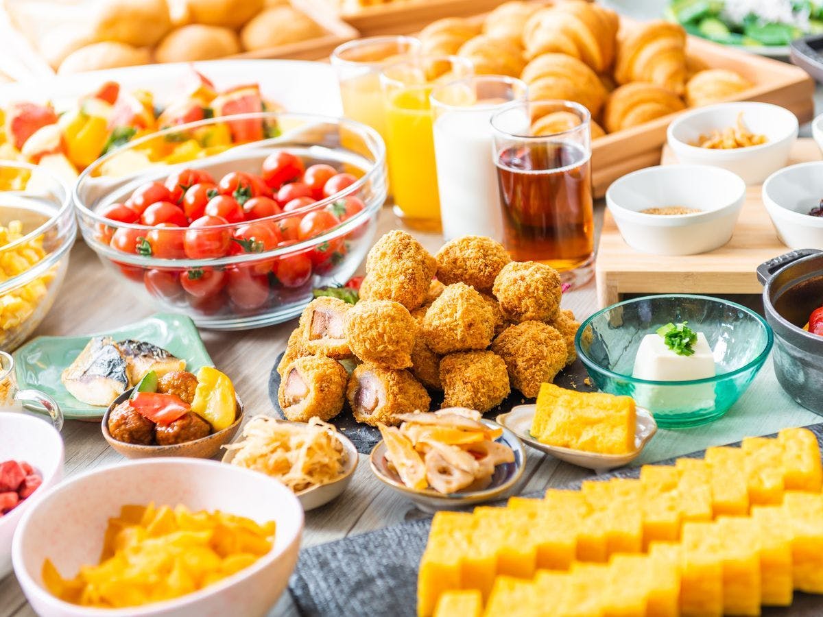 Sarapan di Hotel kami disajikan dalam gaya prasmanan campuran Jepang dan Barat. Kami menyajikan hidangan ikan segar sebagai menu utama yang berganti setiap hari.