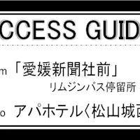 ■Sekitar 5 menit berkendara dari JR Stasiun Matsuyama maupun Stasiun Matsuyamashi (Iyotetsu) ■5 menit berjalan kaki dari Stasiun Furumachi (Jalur Takahama Iyotetsu / Jalur Lingkar Iyotetsu) ■Naik bus limusin sekitar 30 menit dari Bandara Matsuyama atau Pelabuhan Wisata Matsuyama, turun di “Ehime Shimbunsha-mae”, lalu berjalan kaki sekitar 7 menit