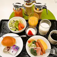 ■Tempat sarapan: Lobi lantai 2 ■Jam operasional: 06.45–10.00 (pesanan terakhir 09.30) ■Menu: Prasmanan Jepang & Barat ■Harga: 1.100 yen per orang (termasuk pajak) ※Silakan mendaftar saat check-in.
