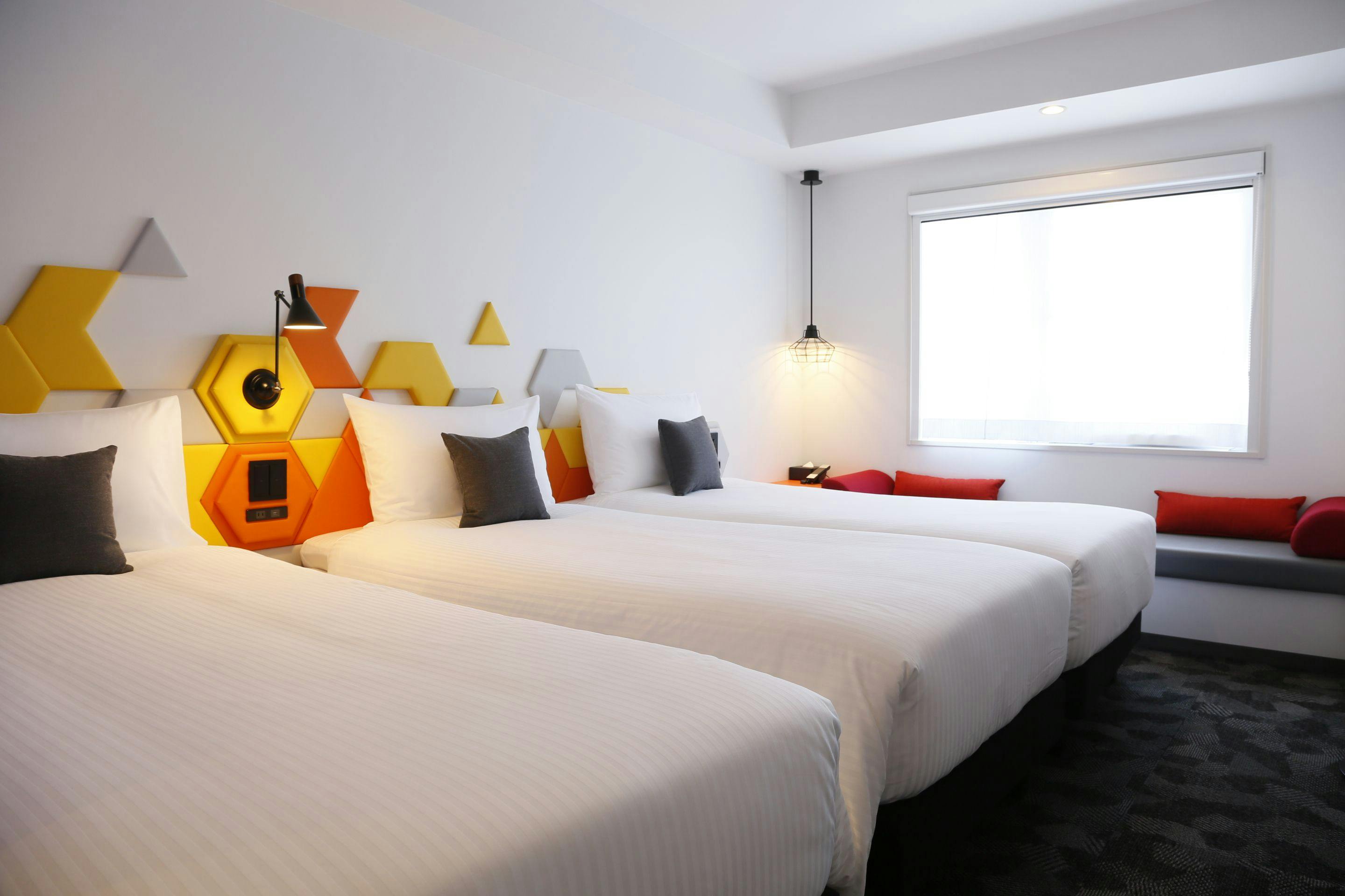 Nikmati relaksasi maksimal setelah lelah bermain di Disney atau berwisata di Tokyo dengan kamar penuh warna dan unik dilengkapi tempat tidur Simmons khusus Ibis Styles! Tersedia kamar twin, triple, hingga kamar untuk 5 orang dengan sudut ruangan terjamin—cocok untuk keluarga atau teman-teman Anda.