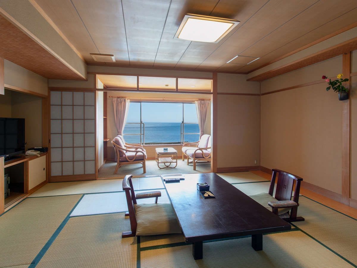 ・Kamar dengan pemandian terbuka menghadap laut ・Kamar sisi laut 10 tikar ・Kamar sisi laut 6 tikar ・Kamar sisi kota 12 tikar ・Kamar sisi kota 10 tikar Kami menyediakan berbagai jenis Kamar. Nikmati pemandangan laut dan langit yang berubah sesuai waktu dan musim dengan memilih Kamar sisi laut.