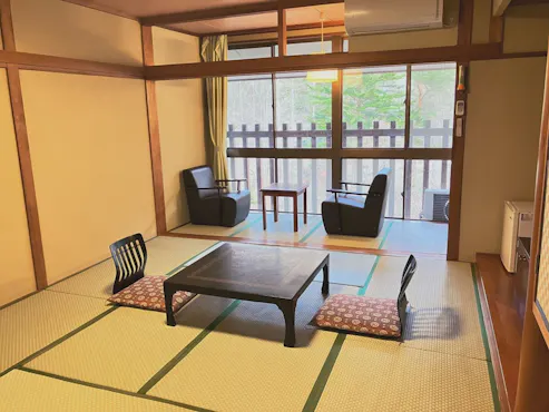 Akomodasi di area mata air panas Yunishigawa yang memiliki sejarah lebih dari 400 tahun. Terletak di pintu masuk kota mata air panas, Anda dapat menikmati mata air panas kecantikan kulit 100% dari sumbernya. Sekitar akomodasi dikelilingi oleh alam yang indah, dari pemandian terbuka Anda dapat menikmati pemandangan pegunungan yang megah. Kamar tamu bergaya Jepang dengan 15 tikar tatami dan balkon luas dapat digunakan hingga 6 orang. Selain itu, terdapat ruang karaoke dan berbagai hidangan daging, ikan, makanan laut, dan sayuran.