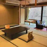 Mata air panas kebanggaan kami adalah 100% dari sumber asli. Nikmati air kecantikan pH9.2 sepenuhnya sambil dikelilingi oleh alam yang megah. Kamar tamu gaya Jepang standar sebagian besar adalah kamar tatami 15 tikar dengan beranda luas. Dapat digunakan hingga maksimal 6 orang.