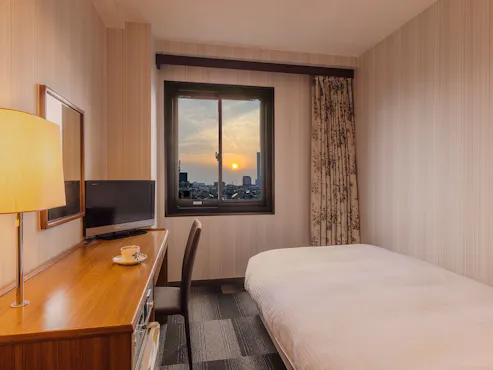 Dari kamar tunggal hingga kamar bergaya Jepang, kami menyediakan berbagai jenis kamar. Kamar bergaya Barat dengan nuansa beige memberikan suasana yang tenang, dilengkapi dengan kasur Simmons untuk mendukung tidur yang nyaman. Nikmati momen elegan sambil meredakan kelelahan bisnis atau wisata.