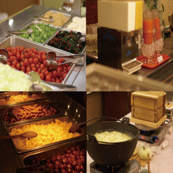 Makan malam dengan hidangan favorit semua orang seperti kepiting merah salju dan roast beef yang bisa dinikmati sepuasnya! Nikmati juga hidangan khas Niigata seperti "Tare Katsu", makanan B-grade "Italian", serta "Hegi Soba" dan "Tempura" yang disiapkan langsung di dapur live, ditambah sayuran segar hasil budidaya sendiri. Menu spesial dari koki dengan bahan musiman tersedia dalam jumlah banyak. Festival sayuran Tsunan yang berubah sesuai musim juga sangat populer! Kami juga menyediakan masakan kaiseki Jepang, jadi bagi Anda yang ingin menikmati makanan sambil duduk santai, silakan pilih Rencana kaiseki. Sarapan adalah kebanggaan Niigata sebagai daerah penghasil beras! Untuk menikmati beras premium merek Uonuma Koshihikari sebanyak mungkin, kami menyediakan acar pendamping nasi seperti masakan khas Niigata "Shoyu no Mi" dan miso jamur dengan yuzu yang sangat populer. Nikmati juga kuliner pagi khas Niigata seperti "Sasa Kamaboko" dan "Sasa Dango".