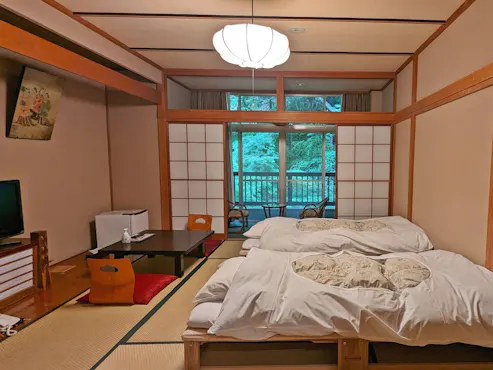 The quality of the Onsen water was exceptional, and the temperature was just right. The main dish for the meal was wild boar hot pot, a rare delicacy not often found in urban areas. The room was clean with a comfortable mattress. Although I usually have trouble sleeping while traveling, I had a restful sleep at this Ryokan.