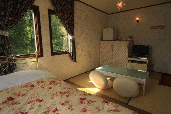Wanita akan senang! Nikmati suasana seperti putri di Kamar lucu dengan tempat tidur kanopi! Nikmati hidangan dari mantan koki. Menu utama dalam kursus adalah sirloin daging sapi Tochigi, daging paha, atau kursus reguler (ayam Saikai dengan saus tomat rasa balsamik Diable). Nikmati berbagai hidangan unik seperti udang ala Mallorca dan sup champignon buatan sendiri yang tidak dapat ditemukan di tempat lain. Cottage suite dapat digunakan seperti vila dengan makanan di Kamar pagi dan malam! Pemandian batu Bakuhanseki dapat disewa secara pribadi dan dilengkapi dengan bar sampo! Sarapan dalam keranjang dapat dinikmati dengan santai di Kamar! Dapatkan juga informasi rekomendasi tentang Nasu! Kebersihan terjamin! Banyak spot foto yang Instagrammable di dalam gedung!