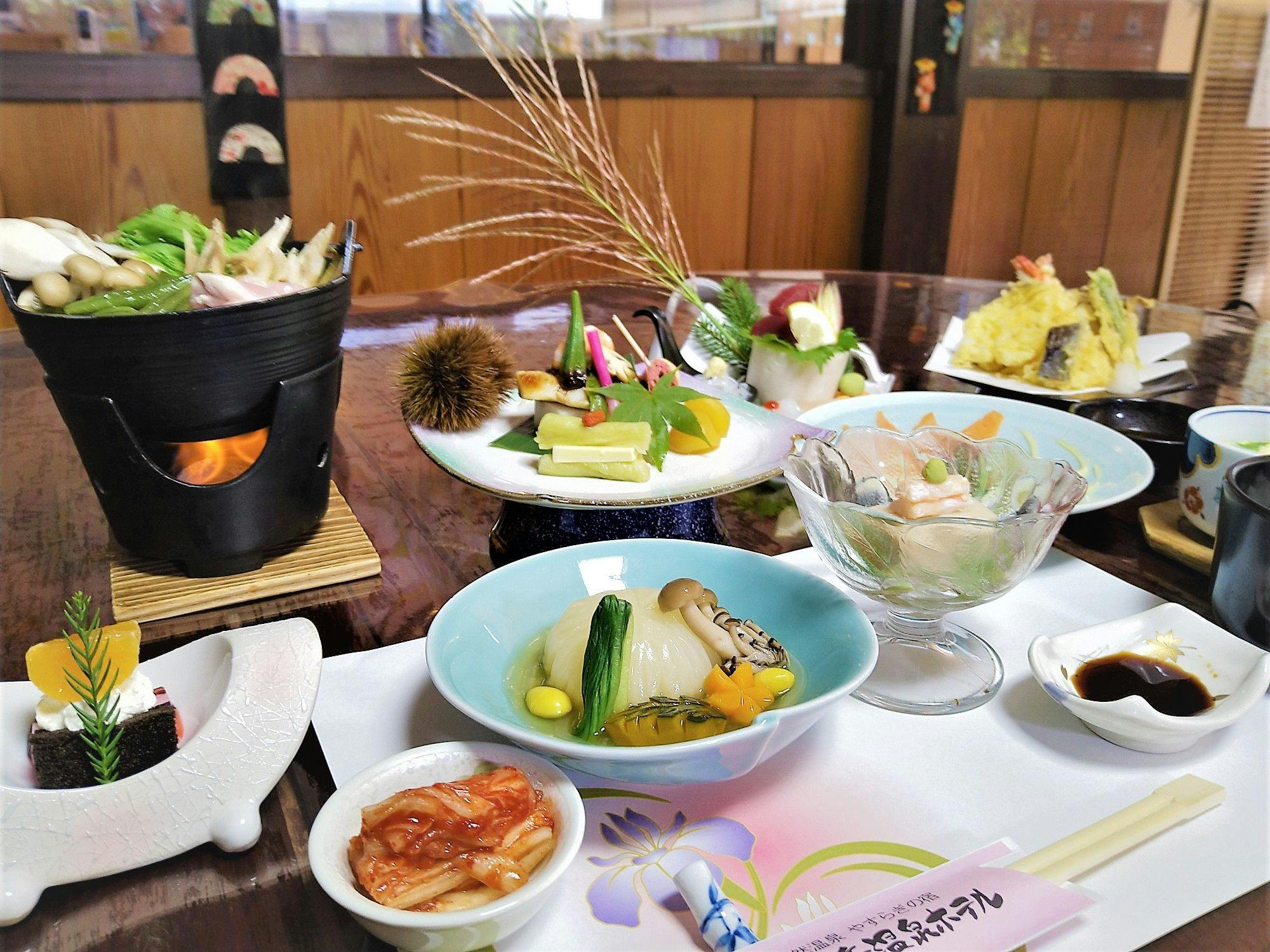 Pemandian air panas asam yang menyegarkan dan cita rasa musiman, ditambah dengan hidangan yakiniku yang memuaskan.