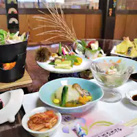 Sangat populer, BBQ gaya Korea yang penuh dengan hidangan Kami menyediakan BBQ gaya Korea menggunakan daging sapi domestik Yurigyu untuk makan malam, terbatas pada jumlah grup. Termasuk bagian umum seperti kalbi dan harami, serta hidangan makanan laut, sangat melimpah. "Mata air panas" dengan "BBQ" Nikmati momen terbaik.